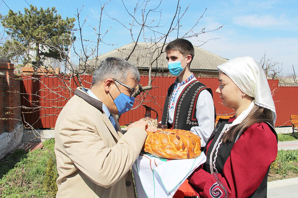 Diplomatik uurunda musaafirleri Gagauziya BAM zaametçileri hem direktoru İrina Konstantinova karşıladılar millet gagauz adetlerinä görä.